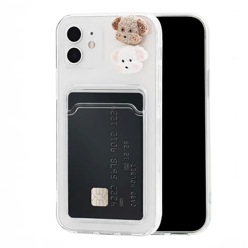 Chengyuanfeng för iPhone 12 Skal med Kortfack och 3D hund-dekor – Ultra-Tunt 1,5 mm Transparent Kortskal i Anti-Gulnande TPU med korthållare Wallet Case för Gym, Aktiv Livsstil & Daglig Pendling