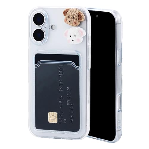 Chengyuanfeng för iPhone 16 Skal med korthållare och 3D hund-dekor – Ultra-Tunt 1,5 mm Transparent Kortskal i Anti-Gulnande TPU med Kortfack Wallet Case för Gym, Aktiv Livsstil & Daglig Pendling