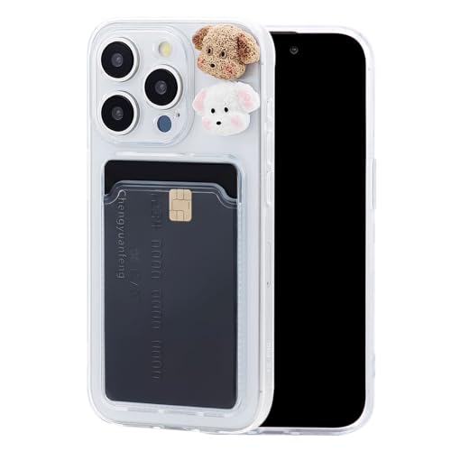 Chengyuanfeng för iPhone 16 Pro Skal med korthållare och 3D hund-dekor – Ultra-Tunt 1,5 mm Transparent Kortskal i Anti-Gulnande TPU Case med Kortfack, för Gym, Aktiv Livsstil & Daglig Pendling