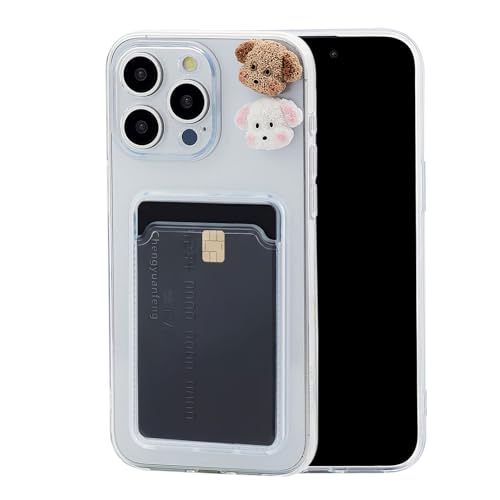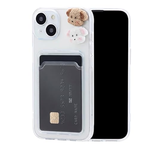 Chengyuanfeng för iPhone 15 Skal med korthållare och 3D hund-dekor – Ultra-Tunt 1,5 mm Transparent Kortskal i Anti-Gulnande TPU med Kortfack Wallet Case för Gym, Aktiv Livsstil & Daglig Pendling