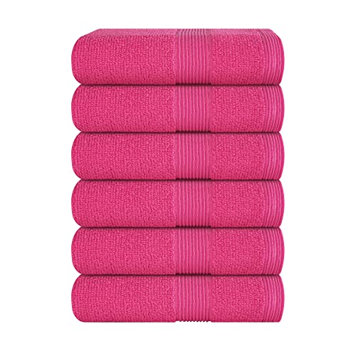 Belizzi Home Ultra Soft 6-Piece Hand Towel Set 16x28-100% Ringspun Cotton - Durable & Highly Absorbent Hand Towels - Ideal for use in Bathroom, Kitchen, Gym, Spa & General Cleaning - Hot Pink