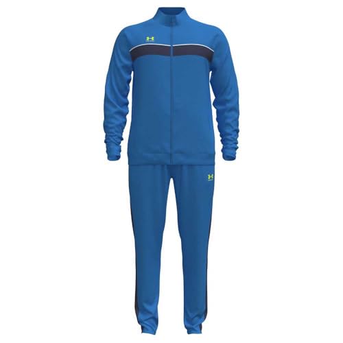 Under Armour Challenger Träningsoverall för män med snabbtorkande material och ankelblixtlås, bekväma och tuffa gymkläder för sport och träning, blå Atlantis/High Vis gul, SM