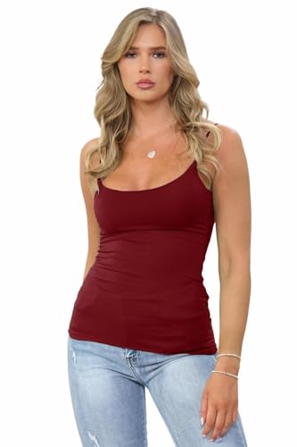 Hamishkane® Dam enkel bodycon cami band ärmlös linne, smal passform rund hals väst toppar kvinnor Storbritannien, stretchig gymkläder, avslappnad sommar damväst, vin, 8-10
