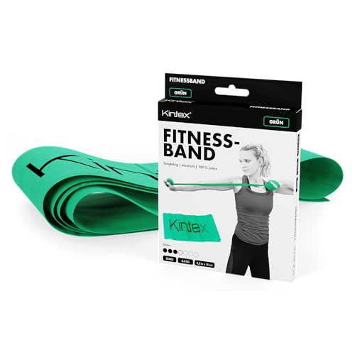 Kintex Träningsband, 2,5 m x 15 cm, gymnastikband i 7 tjocklekar, 100% latex, bärbart träningsband (grön)