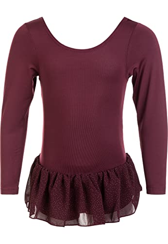Sinoem gymnastikdräkt för flickor, långärmad, ärmlös, tonad färg, glittrande trikådräkt, dans, balett, gymnastik, idrott, för 5–12-åriga flickor., Röd-långärmad, 9-10 År
