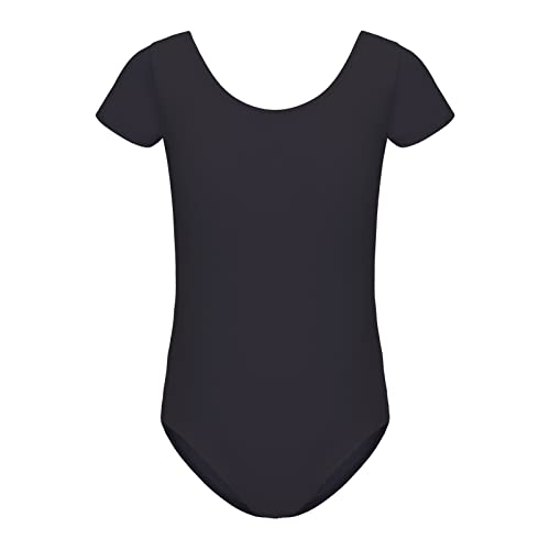 HIPPOSEUS Balettdräkt för Flickor Kortärmad Balettdräkt Gymnastikdräkt, AM0019-Svart,150