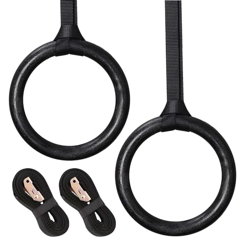 Träningsringar i Trä för Calisthenics & Gymnastik – Justerbara Ringar för Hemmaträning & Gym – Premium Gymringar 28mm/32mm med Bärremmar – För Styrketräning & Full Body Workout