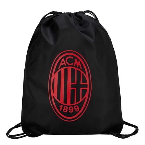 AC Milan Gym Sak Crest Monochrome Red - 190T Återvunnen Polyester - Tjock Nyckelband - För Rossoneri Fans - Officiell Produkt, Svart, L