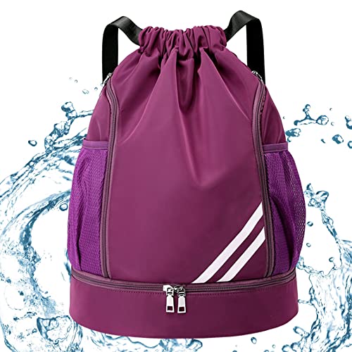 ulapithi Ryggsäck med dragsko| Vattentät sportväska med dragsko, String gymsäck med skofack sidonätfickor för basket, sportkläder, simutrustning, Lila