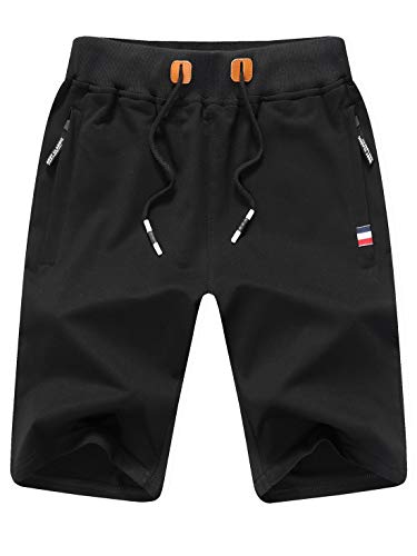 Tansozer Herr Shorts Korta Byxor Herr Sportshorts Herr Träningsshorts Löparshorts för män Bermuda Sommar Atletiska Fitnessshorts Herr Sportiga Gymshorts med Blixtlåsfickor Svart L