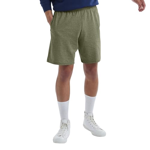 Hanes atletiska shorts för män, favoritshorts i bomull, pull-on stickade shorts med fickor, stickade gymshorts, 19 cm innersöm, L