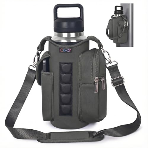 icolor Magnetisk gymväska vattenflaska hållare med rem och telefonfickor, diameter 9,9 cm magnetisk gymväska 5 inbyggda magneter gymtillbehör organiseringsväska sling sleeve (neopren, grå)