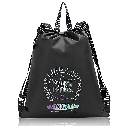 VIKY Gymnastikväska dragsko sportväska svart, nylon gymväska vattentät med justerbar dragsko väska ryggsäck, hög kapacitet gymnastikväska kvinnor och pojkar för skola, sport och gymväska, svart, L
