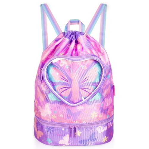 PinkSheep Sportväska för barn med dragsko, gymväska, ryggsäck för sport och skola, fjäril, One size
