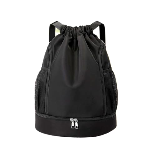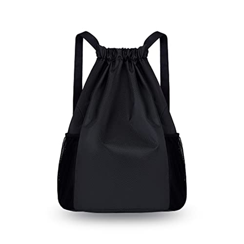 BROTOU Gymväska, fotbollsväska, ryggsäck med dragsko, justerbar dragsko, gymväska, vattentät sportväska för män, kvinnor, barn, ungdom – svart