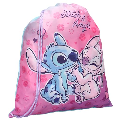 Vadobag Disney Lilo och Stitch - gymväska gymväska ryggsäck - Stitch och ängel - storlek 44 x 36 cm - flerfärgad