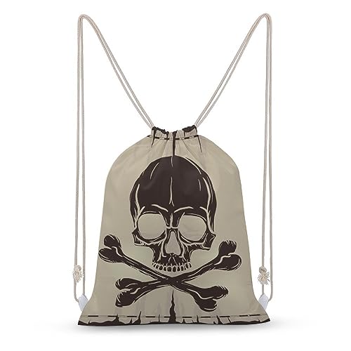 NIBABA Dragsko ryggsäck gammal sjaskig skalle korsben pirat stor kapacitet ryggsäck Cinch vattentålig kanvas sport yoga gymväska för pojkar flickor kvinnor män, Gympapåse