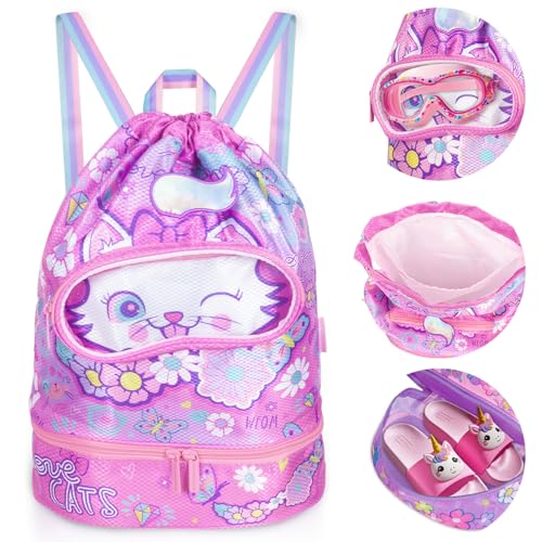 PinkSheep Sportväska för barn med dragsko, gymväska, ryggsäck för sport och skola, Katt, One size