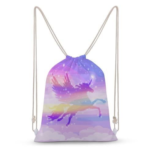 NIBABA Dragsko ryggsäck förtjusande vacker prinsessa enhörning stor kapacitet ryggsäck Cinch vattentålig kanvas sport yoga gymväska för pojkar flickor kvinnor män, Gympapåse