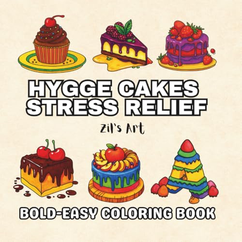 HYGGE CAKES STRESS RELIEF Bold-Easy Coloring Book: Deliciously Fun and Relaxing Designs Featuring Bold, Easy Cake Patterns to Help You Unwind, Relieve ... Treat Enthusiasts Looking for Creative Calm!