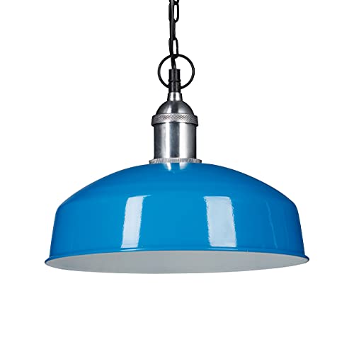 Relaxdays hänge, järn, kedja, 40 watt, 1 låga, hängande, modern design, H x B x D: 142 x 31 cm, ljusblå, metall, W