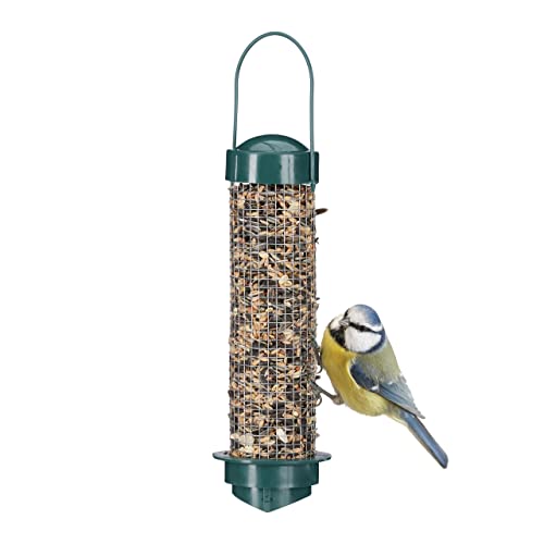 Relaxdays Fågelmatningsstation för upphängning, balkong och trädgård, för vilda fåglar, PP + järn, fodersilo H x D: 35 x 9 cm, grön, 10023941, 1 styck (1-pack)