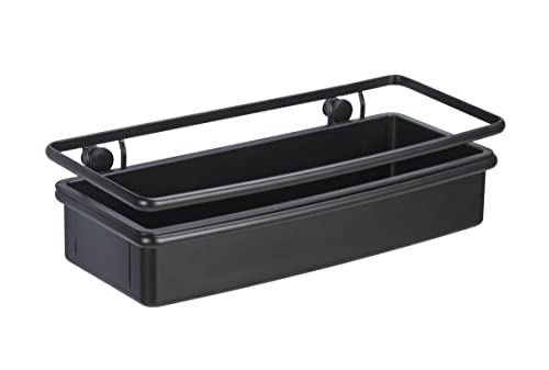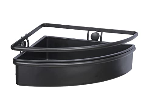 WENKO Hörnhylla Molinella, badrumshylla med djup kupa för säker ställning av vårdprodukter, tillverkad av matt lackerat rostfritt stål med plastinsats (B x H x D): 30 x 8,5 x 21,5 cm, svart