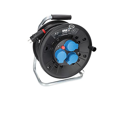 KALLE DAS KABEL Kabeltrumma Classic med 3 Schuko-uttag H07RN-F 3G 2,5 mm² 25 meter för hantverkare gör-det-självare byggarbetsplatser och utomhusbruk