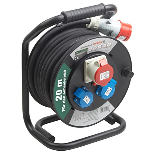 Meister kabeltrumma H07RN-F3G2,5, IP44–20 m kabel – termoskyddsbrytare – utomhus/kabelrulle med CEE- och skoluttag/kabellåda med förlängningskabel/ledningsrulle med vev/7435900