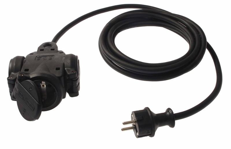 Electraline 62574 professionell grenuttag / förlängning för utomhusbruk, CEE-kontakt, CEE-uttag + 3 Schuko-uttag, 3 m gummikabel H07RN-F 3G2.5, lämplig för camping
