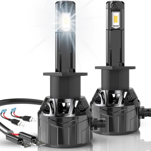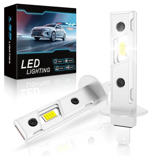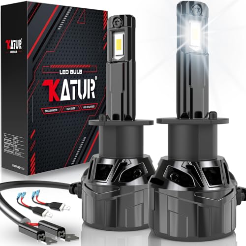 KATUR H1 LED-lampa 16000LM 6000K vit, H1 LED-lampa för bilstrålkastare 80 W 500 % ljusstyrka utan fläkt mini storlek plug and play halogen omvandlingskit ersättning, 2-pack