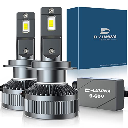 D-Lumina H7 LED-strålkastarlampa för bilar och lastbilar, 400% superljus H1 LED-lampor 26000LM Halvljuslampor 6000K LED-lampkonverteringssats - 2 års garanti, 2 st