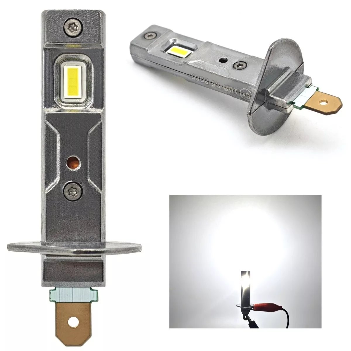 Zethors H1 LED-lampa, 16 000 lm, 60 W, mini, universella kit med H1 LED-glödlampor, ingen polaritet, plug and play, halogenersättning H1, väg- och korsljus, dimljus, 2 st