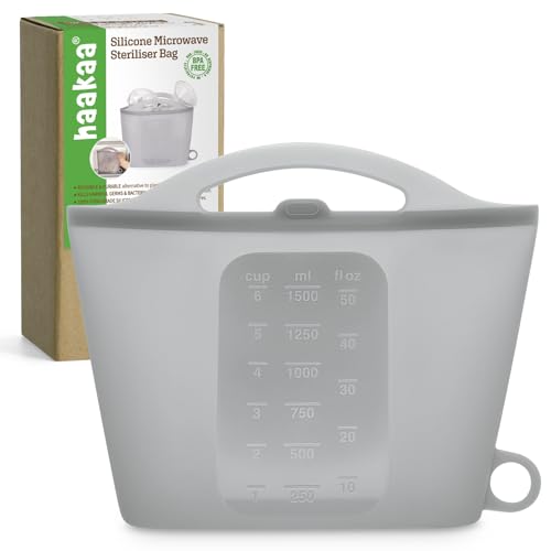 Haakaa silikonångsterilisatorpåse för mikrovågsugn, återanvändbar silikonångpåse för babyflaskor, bröstpump, tillbehör, napp och napp, perfekt för hem och på språng, grå (1P