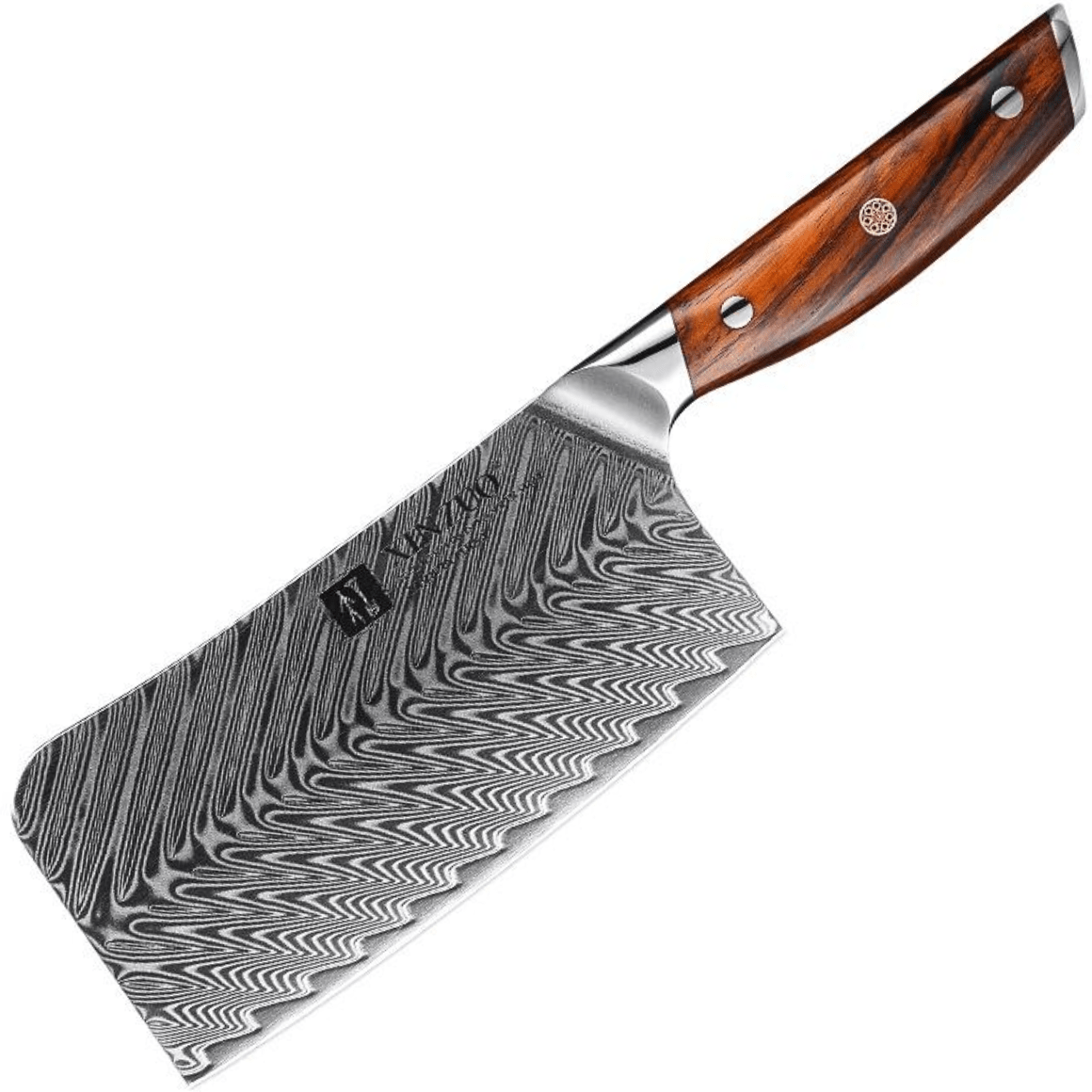 XINZUO B27 6,5-tums hackkniv naturrosenträ med trippelnitar 67 lager Damaskus