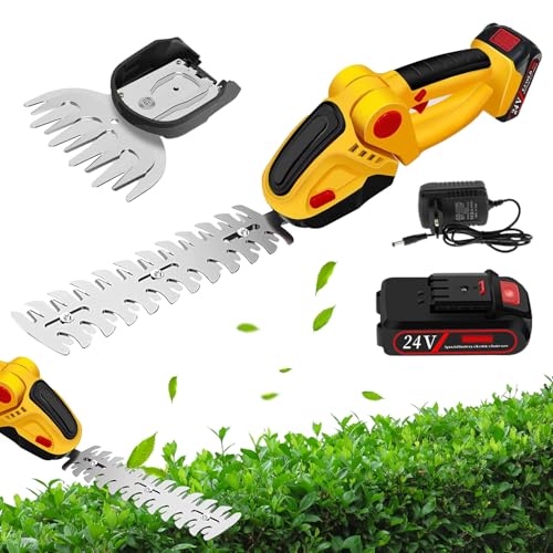 Trådlös häcktrimmer, 24 V, 2 i 1, handsax med uppladdningsbart litiumjonbatteri och laddare, elektrisk grässkärare för trädgård och gräsmatta