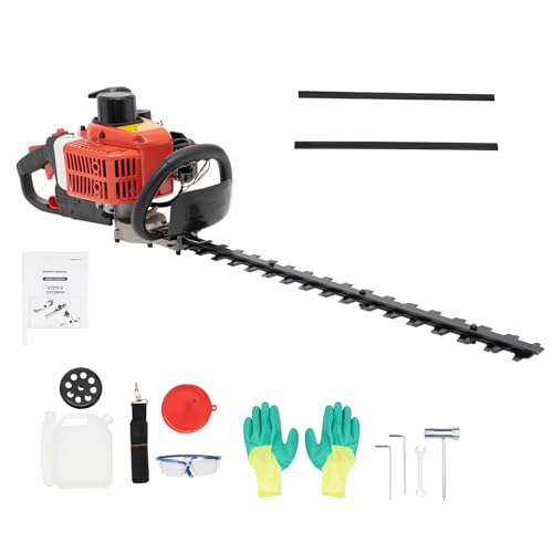 Häcktrimmer, 22,5 cc bensin grästrimmer med glasögon och par handskar, 2-taktsmotor, 12 000 r/min, motorsåg Motorsense häcksax, 70 cm skärlängd