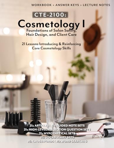 CTE-2100: Cosmetology I - Foundations of Salon Safety, Hair Design, and Client Care: Full Workbook Plus Answer Keys and Lecture Notes (B&W)