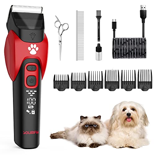 Solimpia Hundkatt Pet Clippers Shavers Elektrisk Pet Grooming Trimmer Kit Uppladdningsbar Sladdlös Låg Buller Professionell Pet Hair Trimmer Set