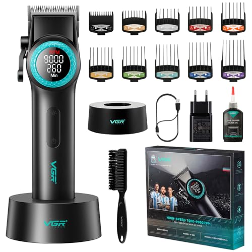 VGR 001 Professional Hair Clippers for Men, Cordless Barber Clippers Hair Cutting, Carbon Steel Blade Trimmers for Barbers, 9000RPM, LED Display, Black