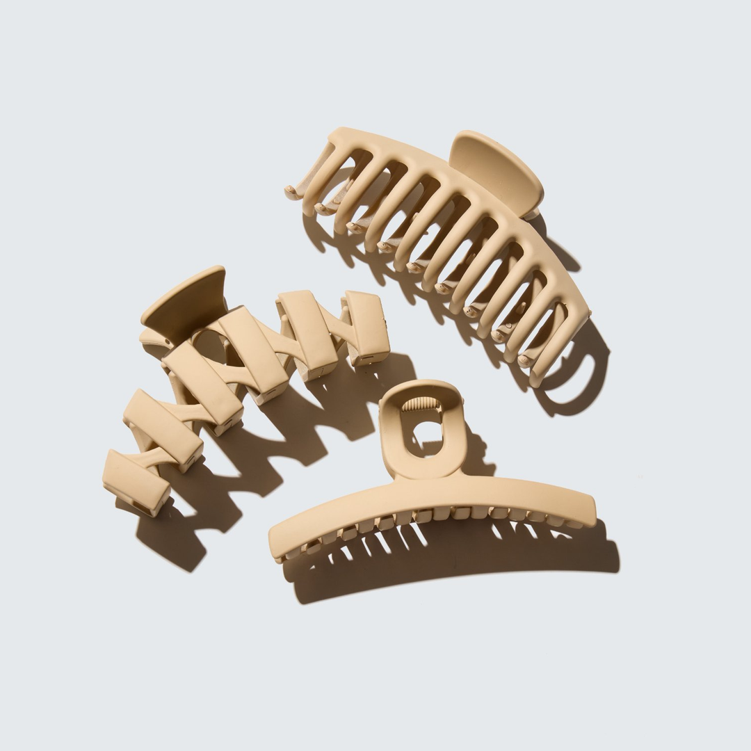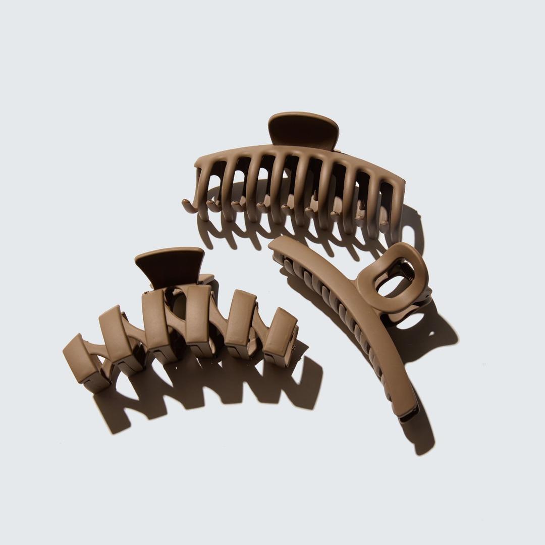 Medium Claw Hair Clips, 3-Pack, Coffee