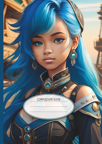 A4 College Ruled Notebook for School: Blue Hair Anime Warrior Edition: The Elaisa Cole Collection - Aesthetic Manga Heroine Cover, Large Composition ... Ruled Anime Stationery for Students and Teens