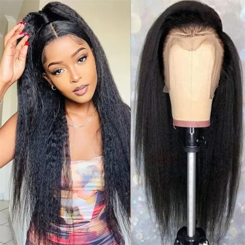 22 tum Glueless Wigs Human Hair, Kinky Straight Lace Front Wigs Human Hair 13 x 4 Äkta HD-spets Full Front Human Hair Wigs 150 % Density Pre Plucked Hairline Bleached Knots osynlig spets Wig