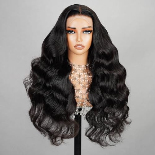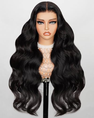 13x4 HD Lace Front Wigs 200% Density Brazilian Human Hair For Women Wear and Go Glueless Wigs Bleached Knots Body Wave Human Hair Wigs Pre Plucked With Baby Hair Natural Black Color 26 Inch