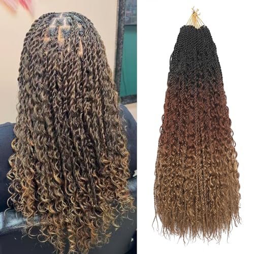 BLTYXT Goddess Boho Box Braids Crochet hair 18 Inch 8 Packs Pre Looped Water Wave Crochet Hair for Women Hair Extension (T1B-30-27, 18 Inch(8 Packs))