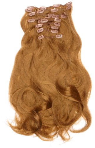 Love Hair Extensions Ett stycke 100% äkta hår clip-in-förlängningar – maximal volym färg 27 – guldblond – 46 cm, 1-pack (1 x 35 g)