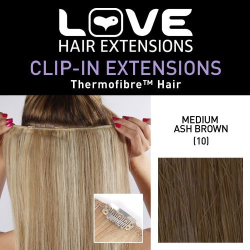 Love Hair Extensions Termofiberklämma i ett stycke färg 10 – medium askbrun – 46 cm, 1-pack (1 x 22 g)