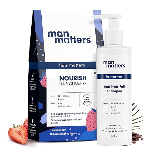 Green Velly Man Matterrs Anti Hair Fall Shampoo- 200 ml & Biotin Hair Gummies (30 dagar pack) | Strengthens & Smoothens Hair | 30 Gummies