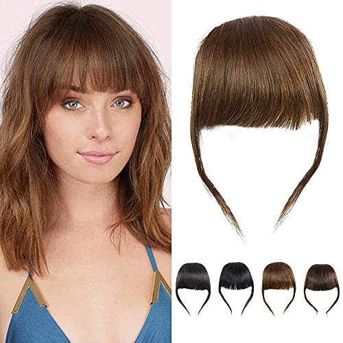 Vigorous Bangs Hair Clip, 360° Cover Clip in Bangs Real Human Hair 100% Human Hair Straight Hair Pieces for Women with Thinning Hairs (Dark Mocha Brown)