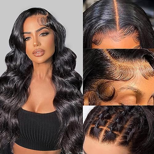 13x4 HD Lace Front Wigs 200% Density Brazilian Human Hair For Women Wear and Go Glueless Wigs Bleached Knots Body Wave Human Hair Wigs Pre Plucked With Baby Hair Natural Black Color 26 Inch